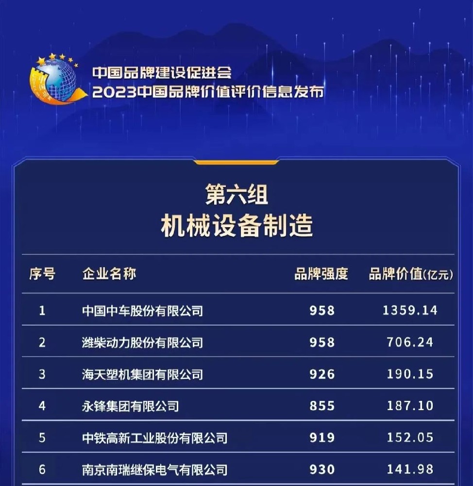 日前,由新華社、浙江省人民政府、中國品牌建設促進會、中國資産評估協會聯合發布“2023中國品牌價值評價信息😺”,中國中車以1359.14億👻元品牌價值登上中國機械設備制造領域品牌價值榜首,品牌強度達958,位居全榜第一,入選“品牌建設領跑者”。